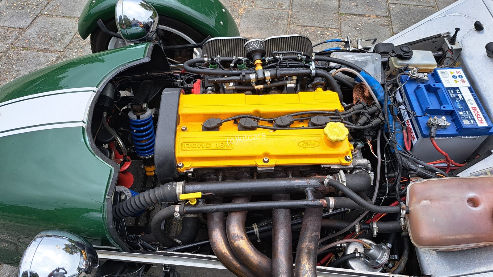 De Ford Zetec aandrijflijn op de Ford T9 bak is erg mooi afgesteld. Met de Webcon Alpha programmeerbare ecu en Weber Throttlebodies (zoals Jenvey) loopt de auto erg hard met ca 165pk vermogen.
