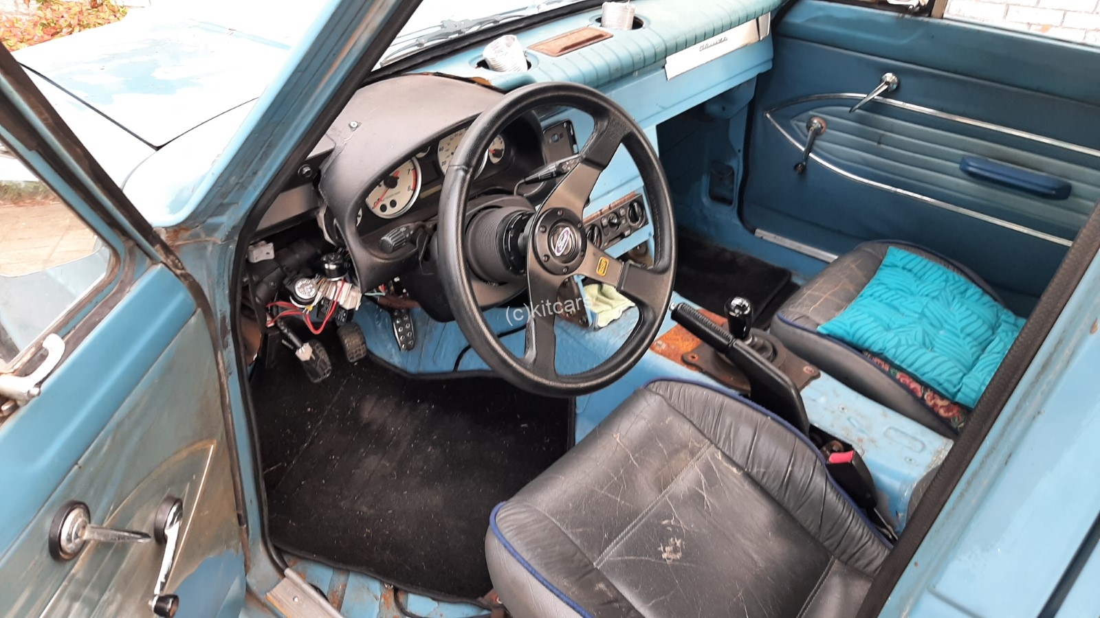 Nooit was hij gerestaureerd of gespoten. De oude Ford motor alsmede de complete assen en stuurinrichting zijn verwijderd en vervangen door alles van een Mazda mx5 NB.